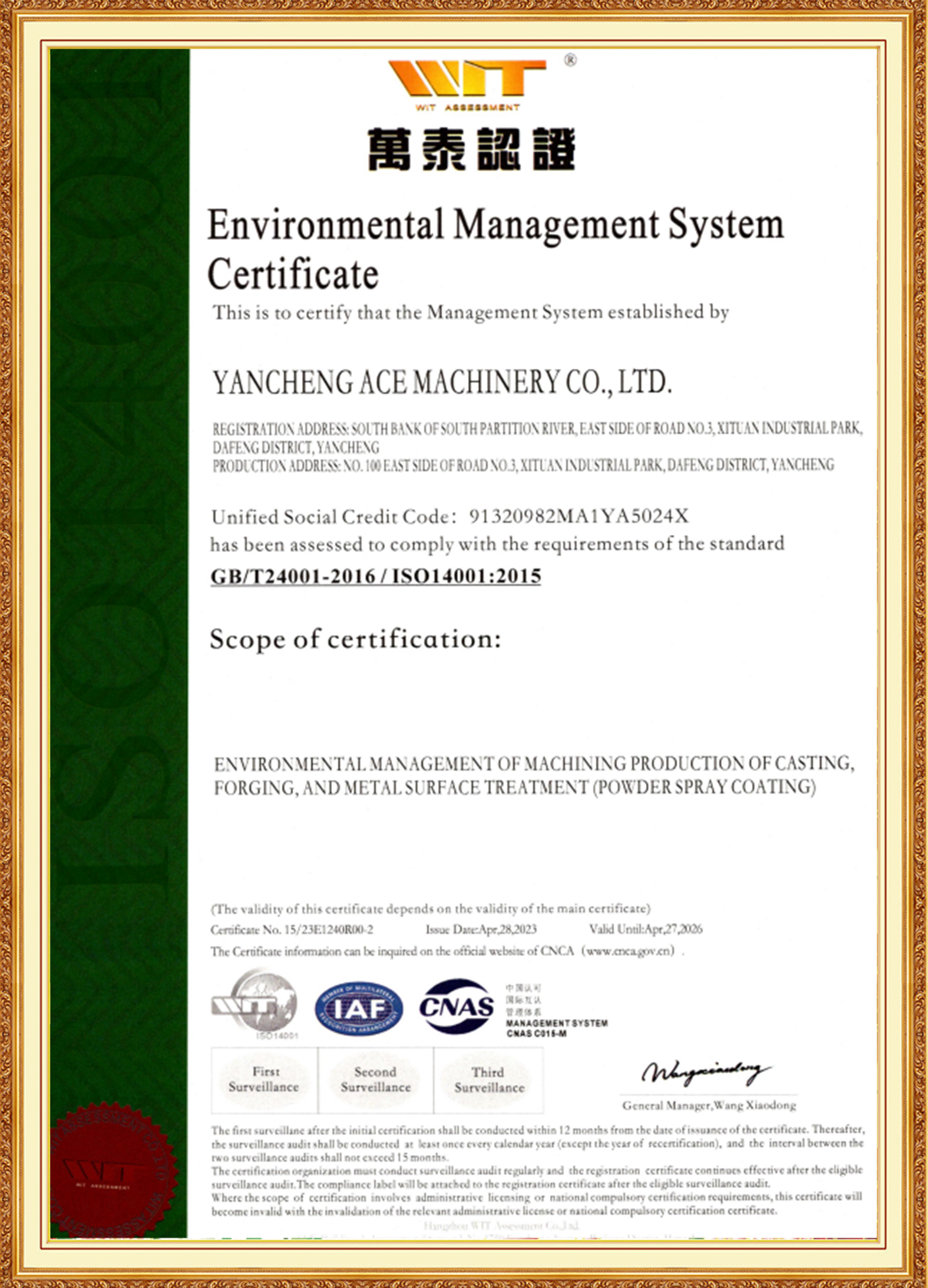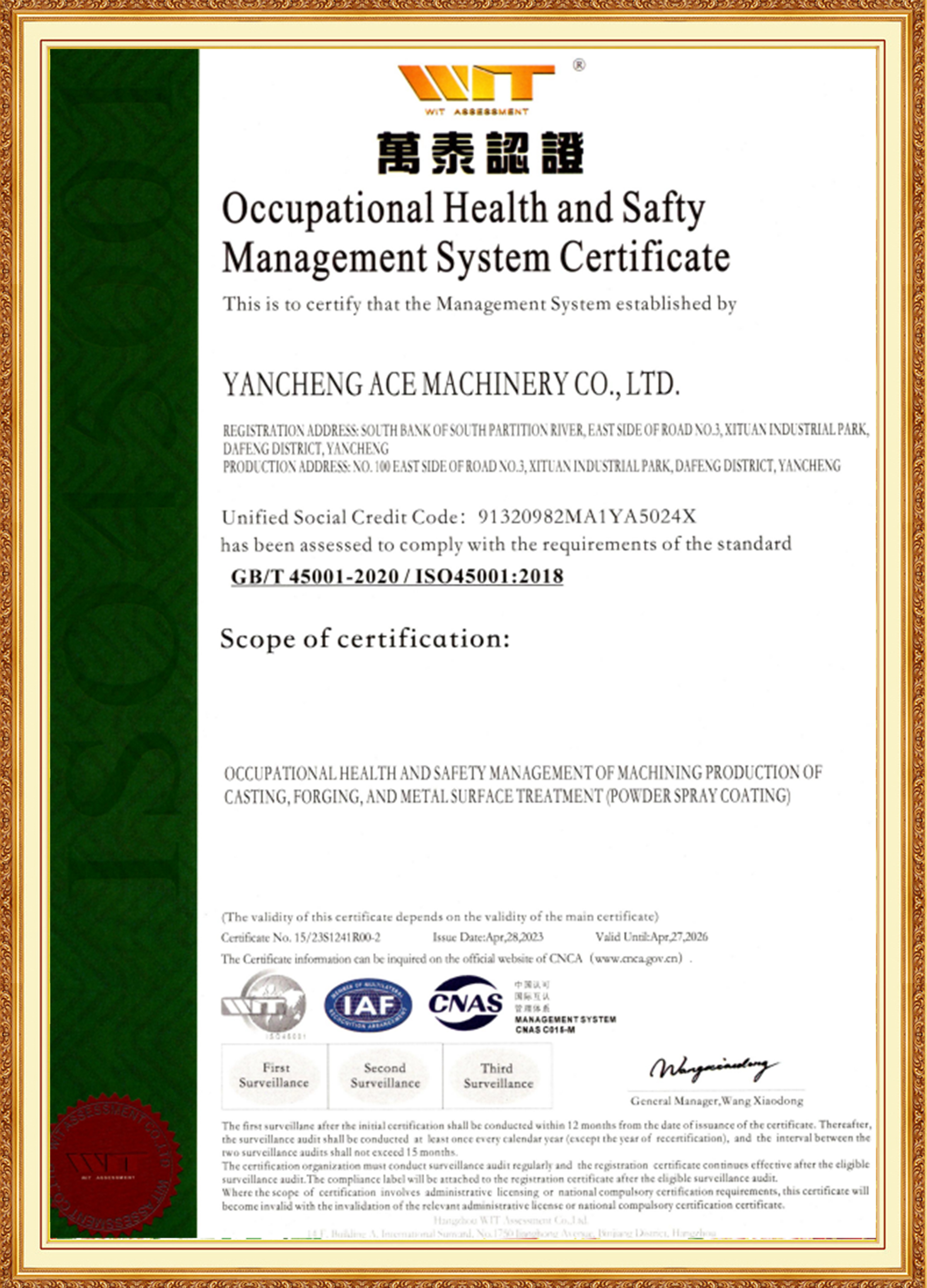 หยานเฉิง ACE เครื่องจักร Co., Ltd.: ก่อตั้งขึ้นในปี พ.ศ. 2562 ครอบคลุมพื้นที่ 20 เอเคอร์ มีพื้นที่ 13,333 ตารางเมตร มีสายการผลิตเหล็กโครงสร้างเชื่อม-ยืดตรงแบบบูรณาการ และเวิร์กช็อปการตัดเฉือนที่มีความแม่นยำ
