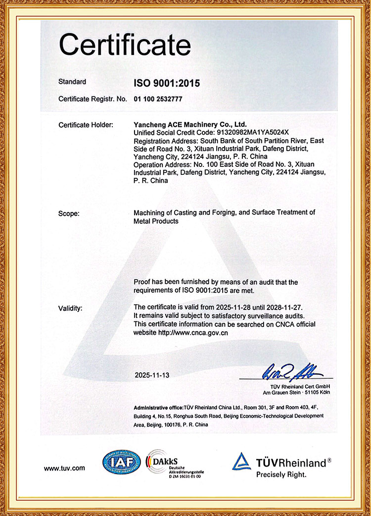 ACE Group is a comprehensive enterprise group focused on the heavy industrial manufacturing sector, serving as a China การตีขึ้นรูปดุมล้อ Manufacturers and Wholesale การตีขึ้นรูปดุมล้อ Factory. Its business spans forging, heat treatment, precision machining, welded structures, and heavy-duty power & free chain spraying production. This integrated layout covers the core production processes of the industrial machinery industry, combining technological strength with large-scale production capabilities.